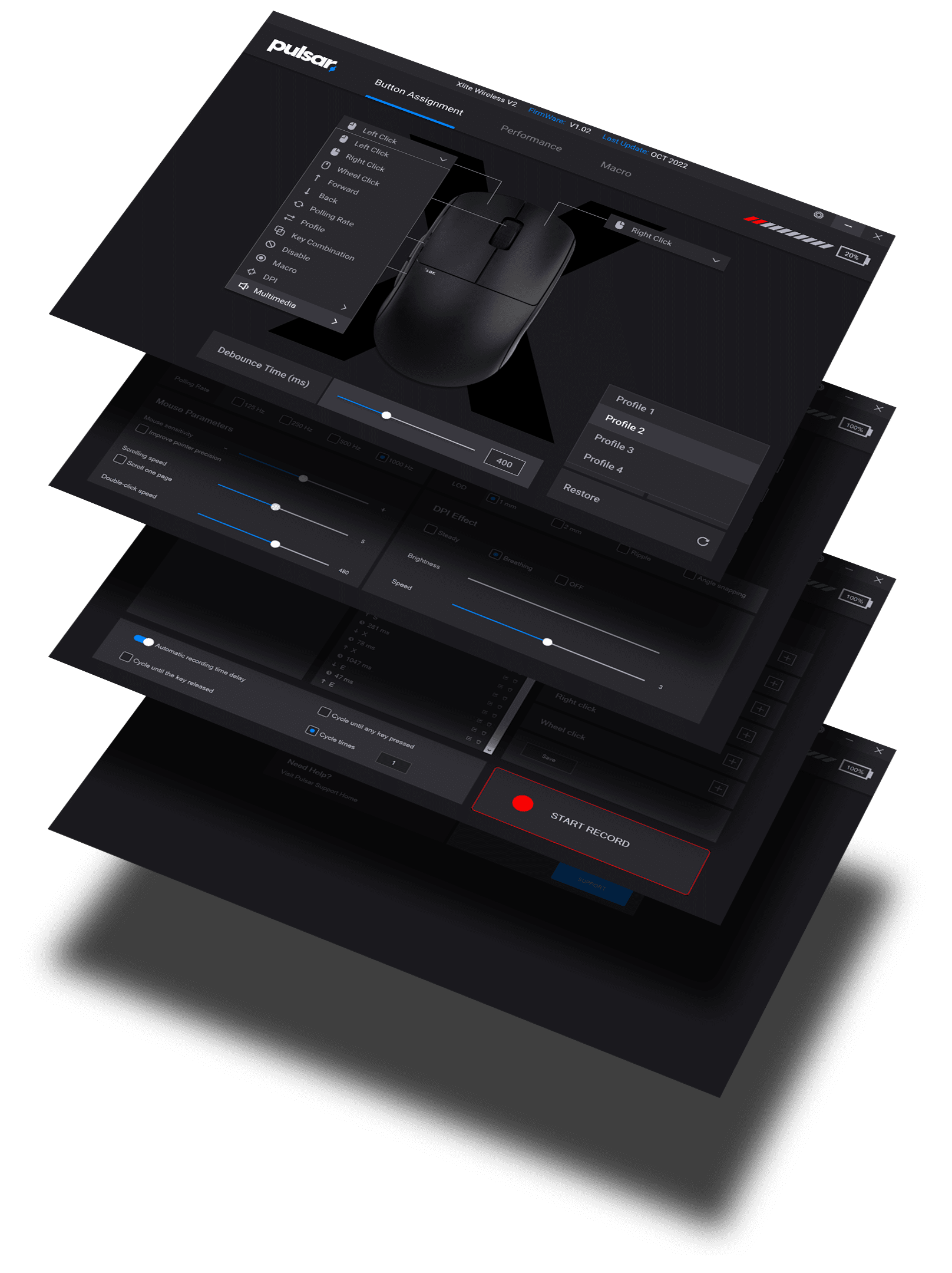 Precisely adjust everything with our Software. Re-assignkeys, make macros, adjust debounce time as low as 2ms and more.