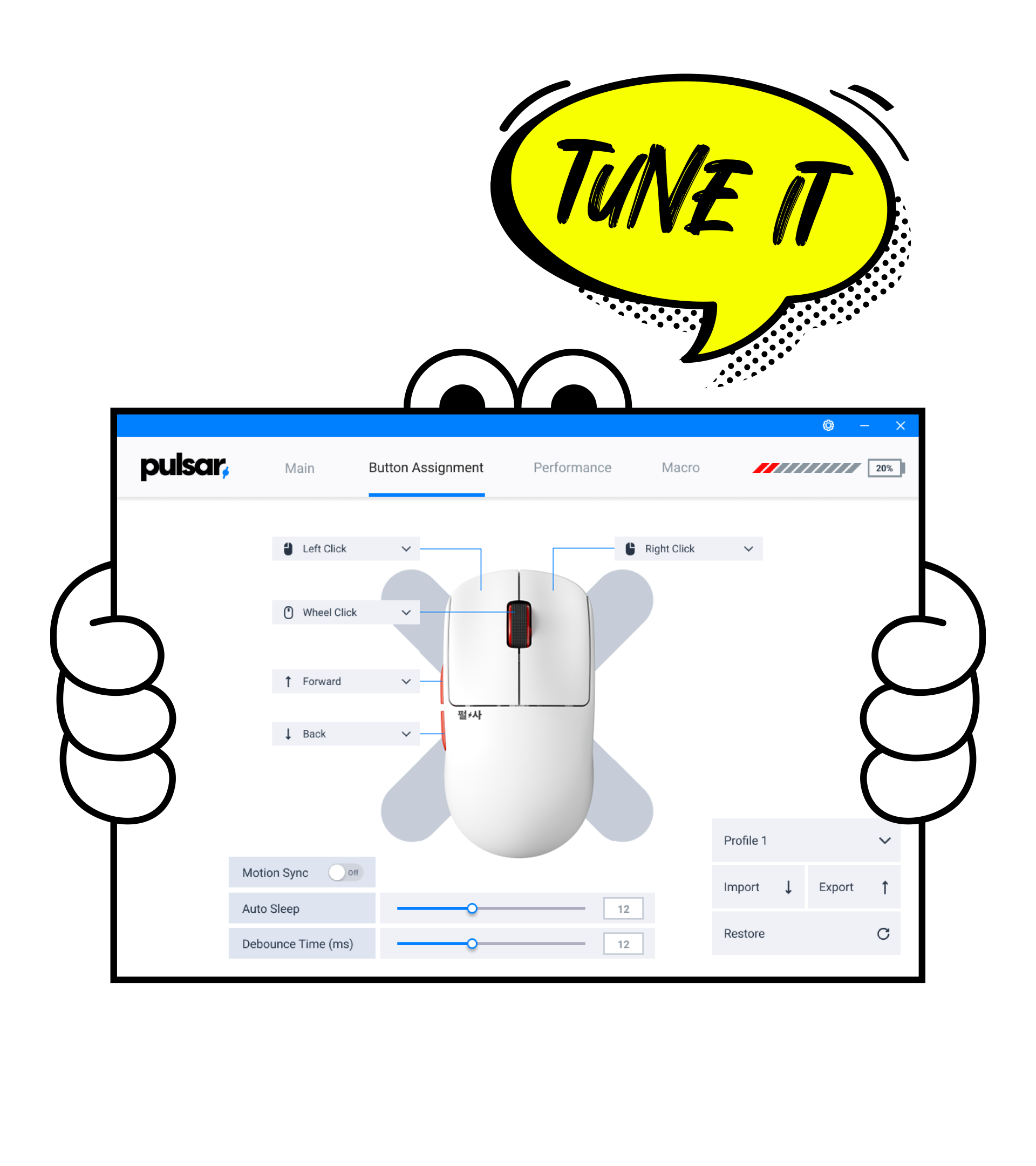 With the X2 CrazyLight's dedicated software, you can adjust DPI, polling rate, and button functions with ease. It’s a straightforward tool to help you optimize your mouse for smooth and responsive gameplay.